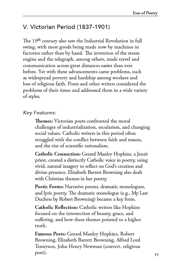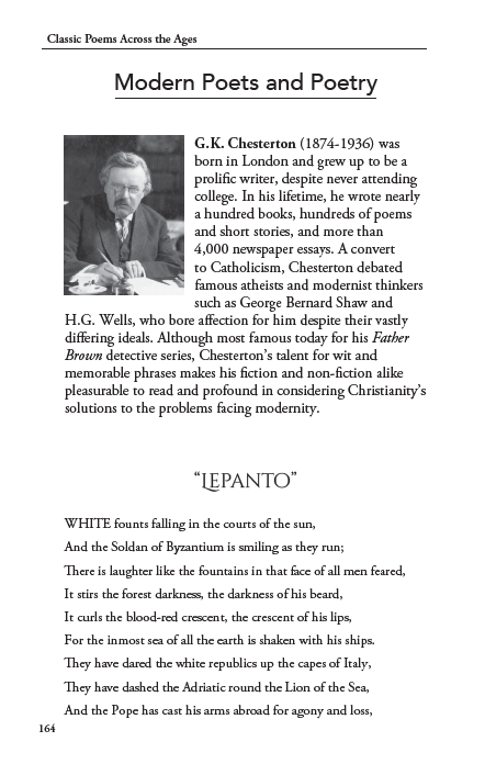Students encounter foundational authors alongside sacred and devotional verse while learning how poetry actually works. The volume teaches meter, rhyme, imagery, and poetic form in clear explanations, then applies those concepts directly to the readings. Biographical notes and historical context help readers see each poet as part of a larger cultural conversation that shaped literature, art, and thought.